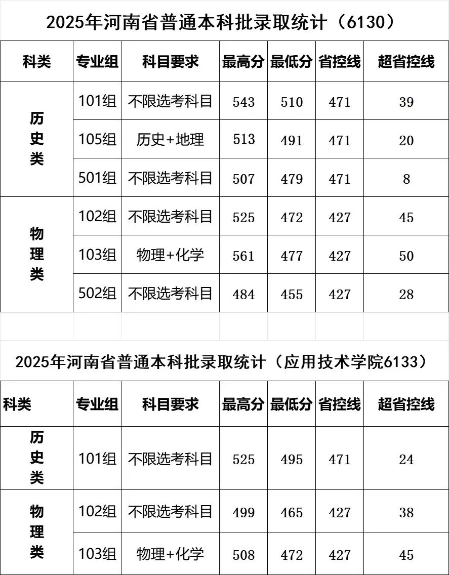 今年是河南省全面实施新高考的第一年,黄河科技学院(6130)物理类设置3个专业组,其中103专业组录取最低分数线超过省控线50分;历史类设置3个专业组,其中101专业组录取最低分数线超过省控线39分。应用技术学院(6133)物理类设置2个专业组,其中103专业组录取最低分数线超过省控线45分;历史类设置1个专业组,录取最低分数线超过省控线24分。